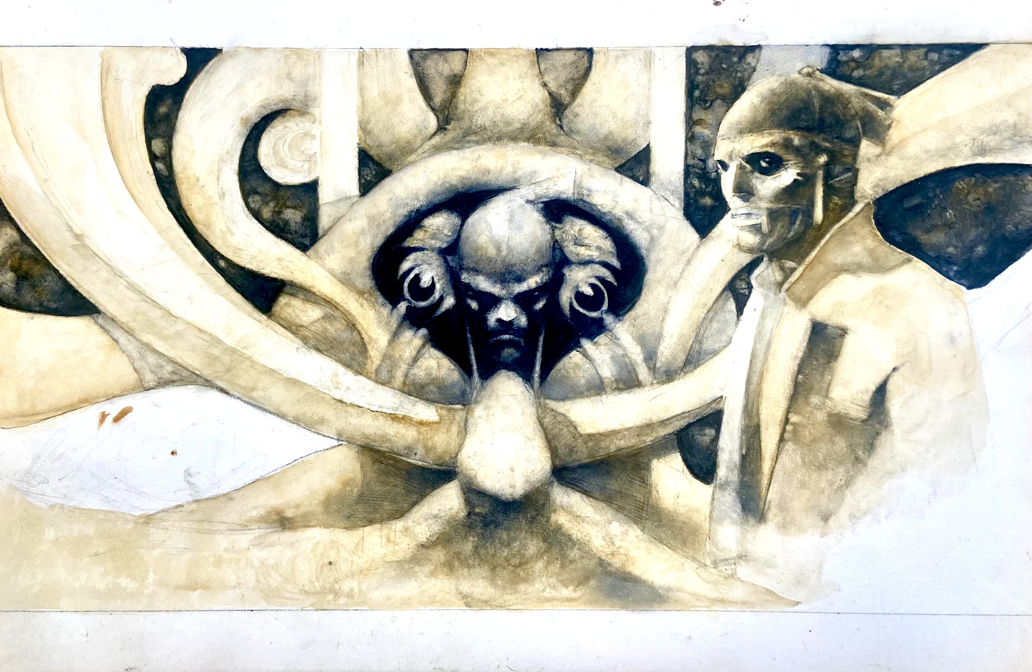 | Descrizione | Studio di copertina (non utilizzato) per Libri UT L'inizio. Cm. 30x20. Tecnica mista su legno. Codice 1445. | |