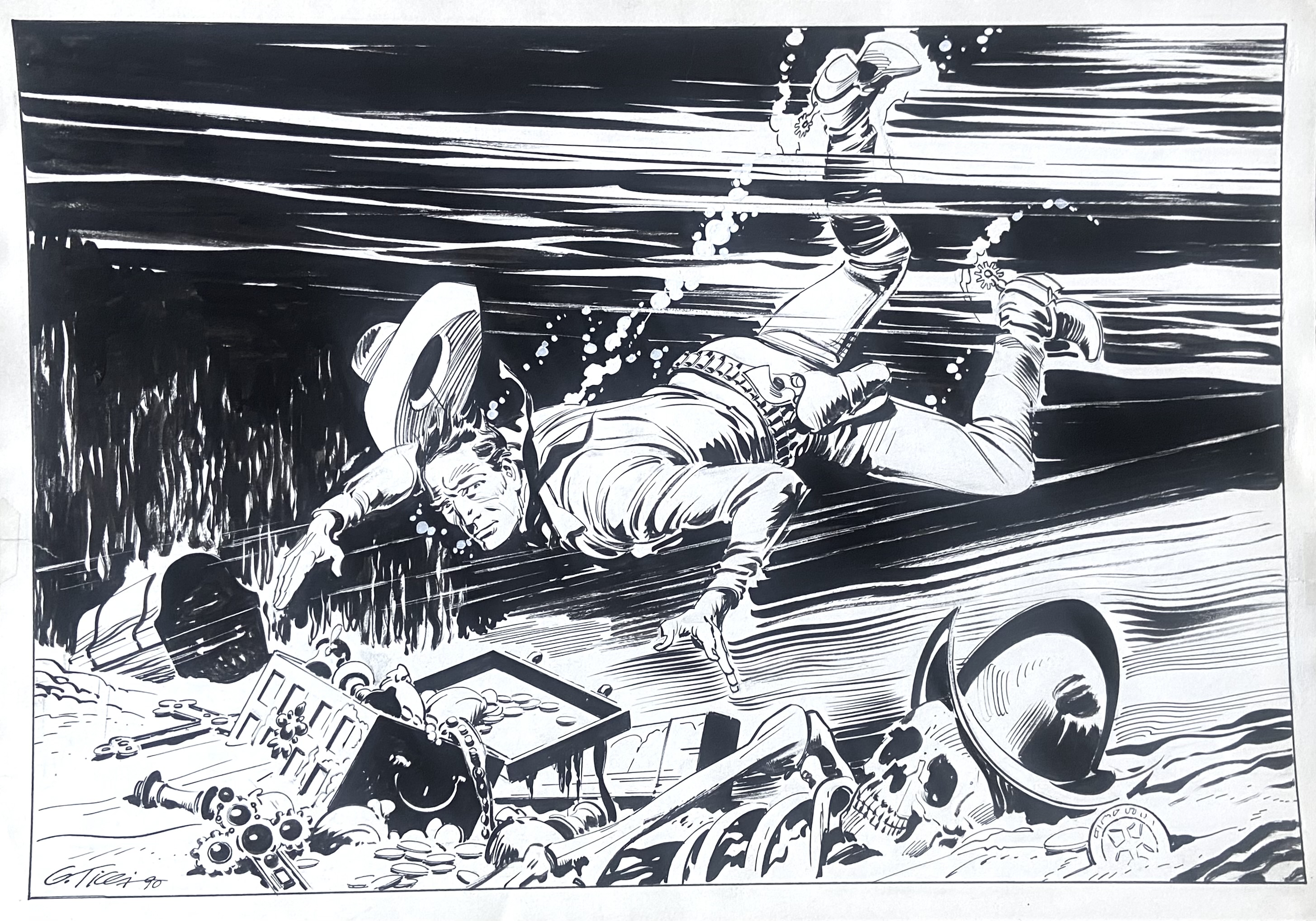 | Descrizione | Illustrazione originale per Tex pubblicata su "Tex. L'avventura e i ricordi". Cm. 35x25. China su cartoncino. Firmata. Codice 2047. | |