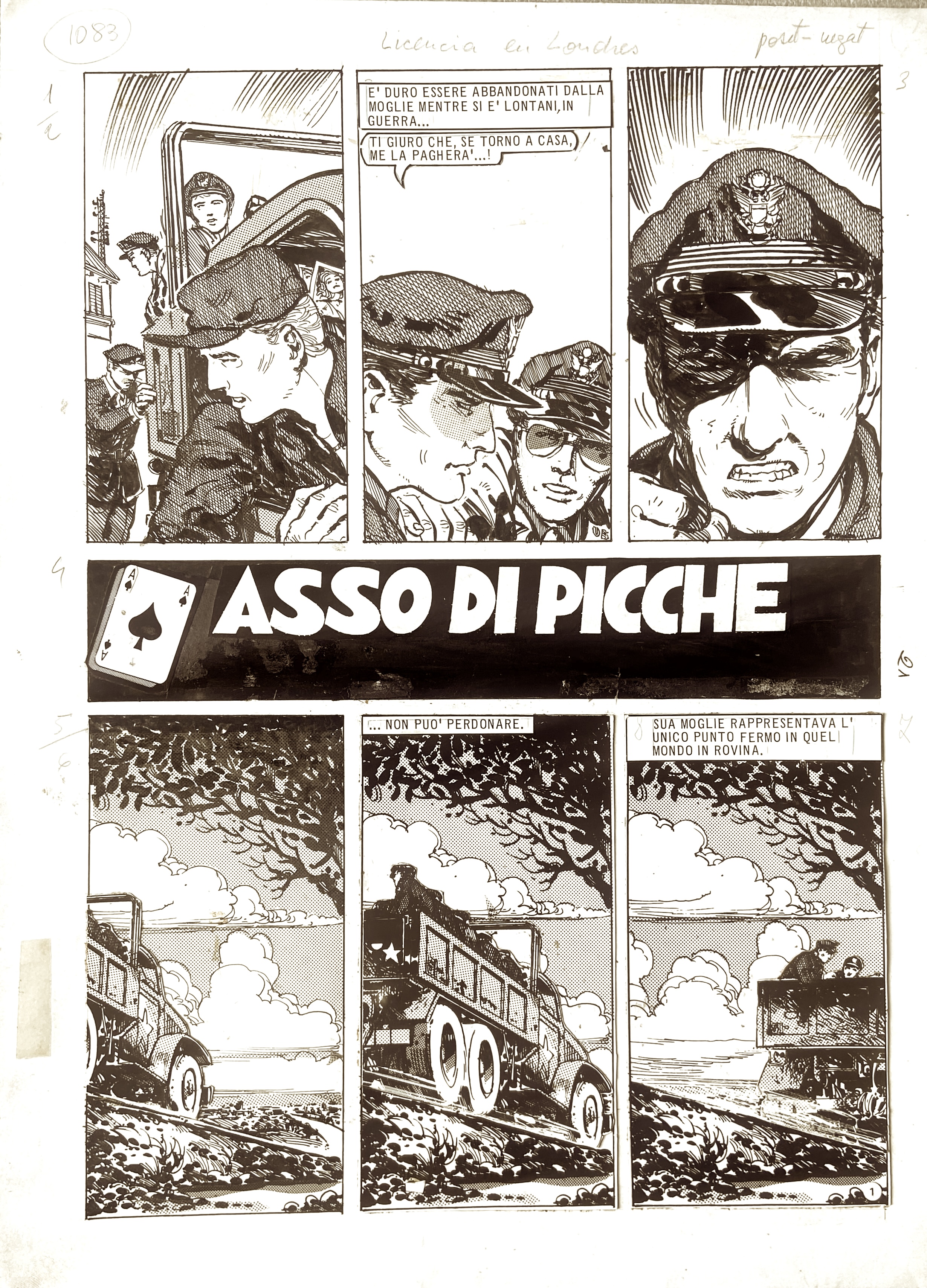 | Descrizione | Tavola originale per Asso di Picche. Cm. 29,5x40. China e retino su cartoncino. Parzialmente rimontata. Codice 2096. | |