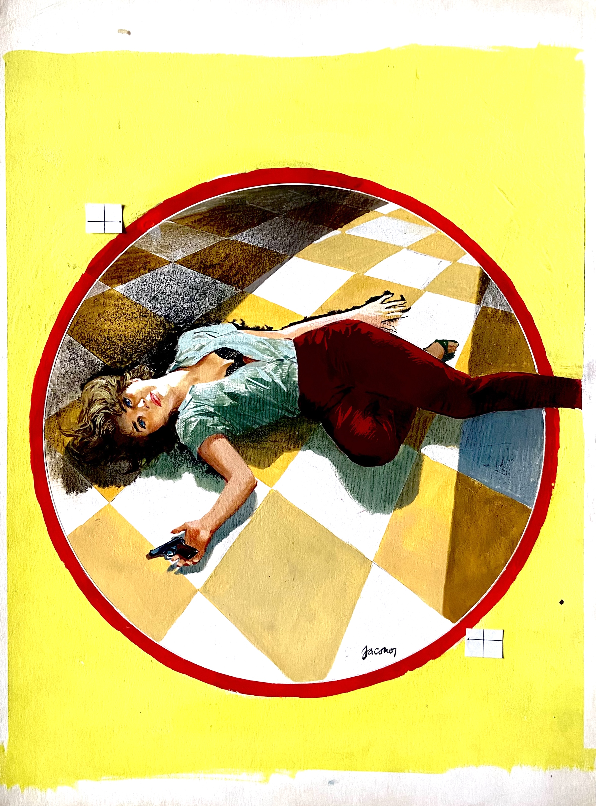| Descrizione | Copertina originale per Gialli Mondadori n. 985 "Il più antico movente del mondo" di Dolores Hitchens. Cm. 33x45. Tempera su cartone. Firmata. Codice 2111. | |