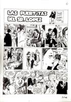 Tavola originale per "Las puertitas del Sr. Lopez". Cm. 25x36. China su cartoncino. Firmata. Codice 2059.