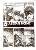 Tavola originale per Asso di Picche. Cm. 29,5x40. China e retino su cartoncino. Parzialmente rimontata. Codice 2096.