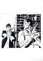 Tavola originale per Dylan Dog n. 371. Cm. 29,5x42. China e pennarello su cartoncino. Codice 2082.