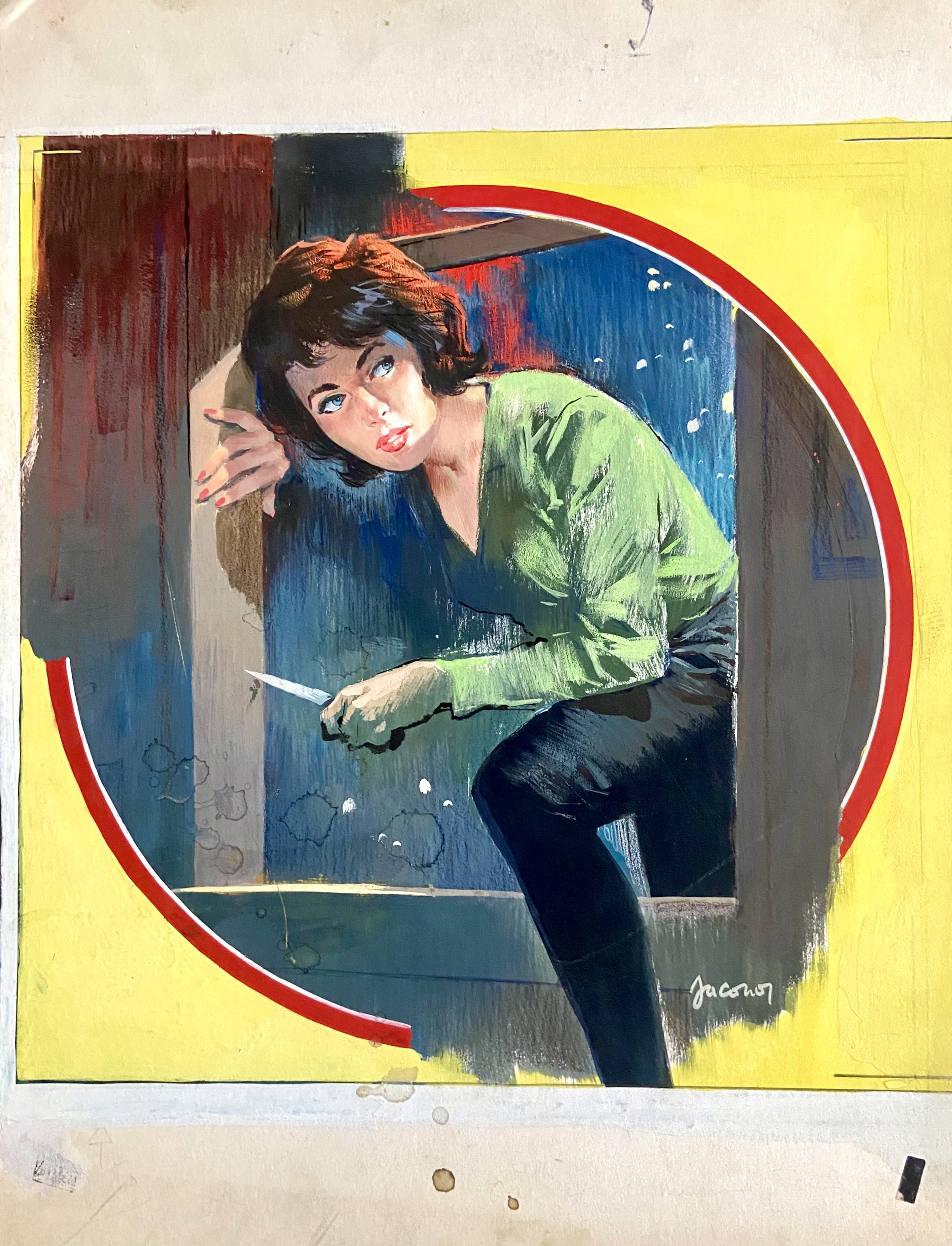 Descrizione | Copertina originale per Gialli Mondadori n. 781 "La fiaba del delitto". Cm. 25x37. Tempera su cartone. Firmata. Codice 1934. | |
