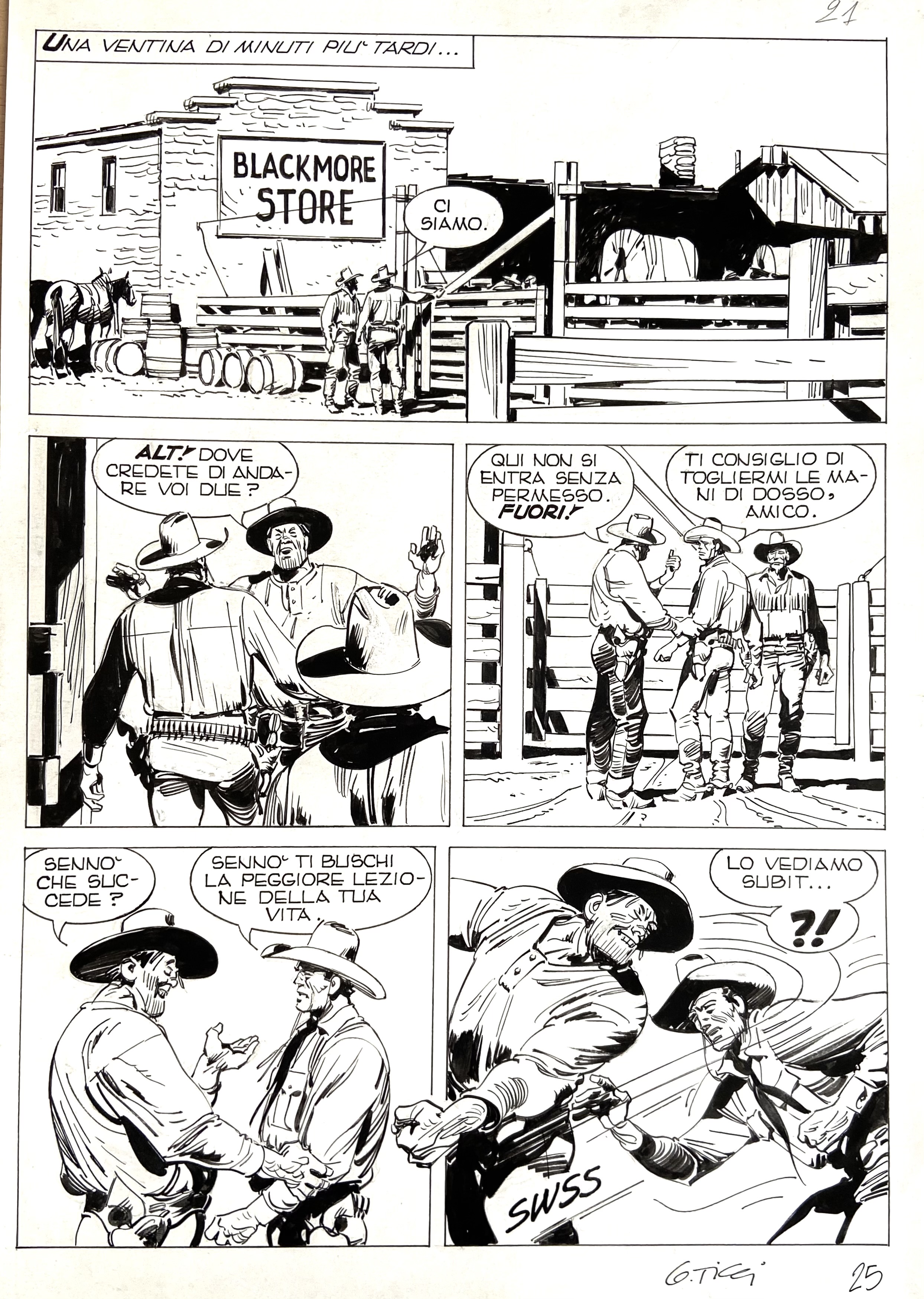 | Descrizione | Tavola originale per Tex n. 521. Cm. 25x35. China su cartoncino. Firmata. Codice 2021. | |