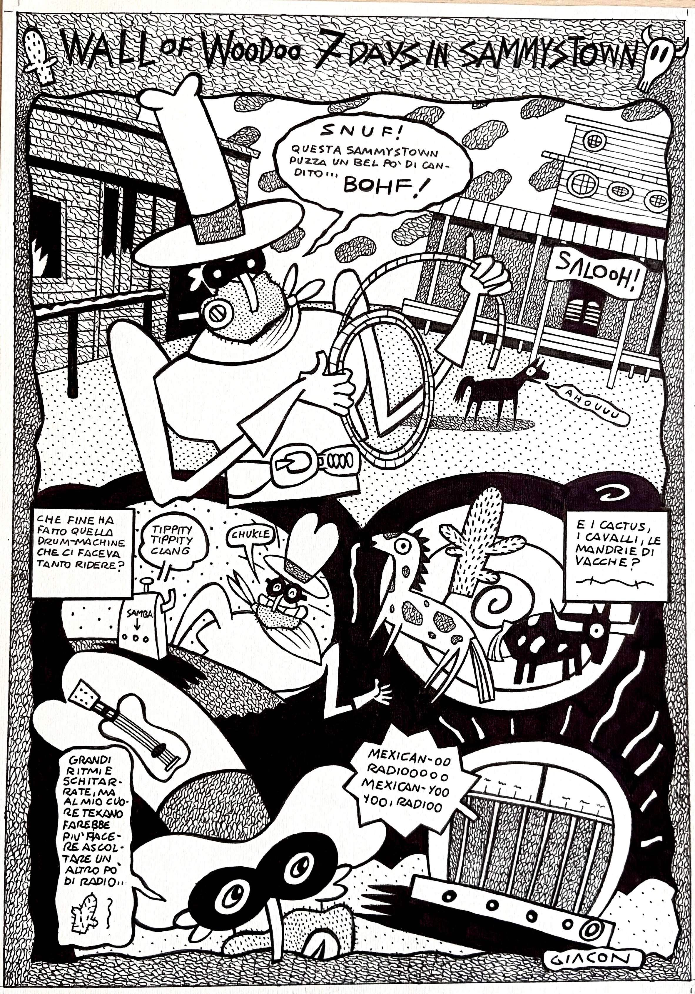 | Descrizione | Tavola originale per Wall of Woodoo. Cm. 24x34. China su cartoncino. Firmata. Codice 2027. | |
