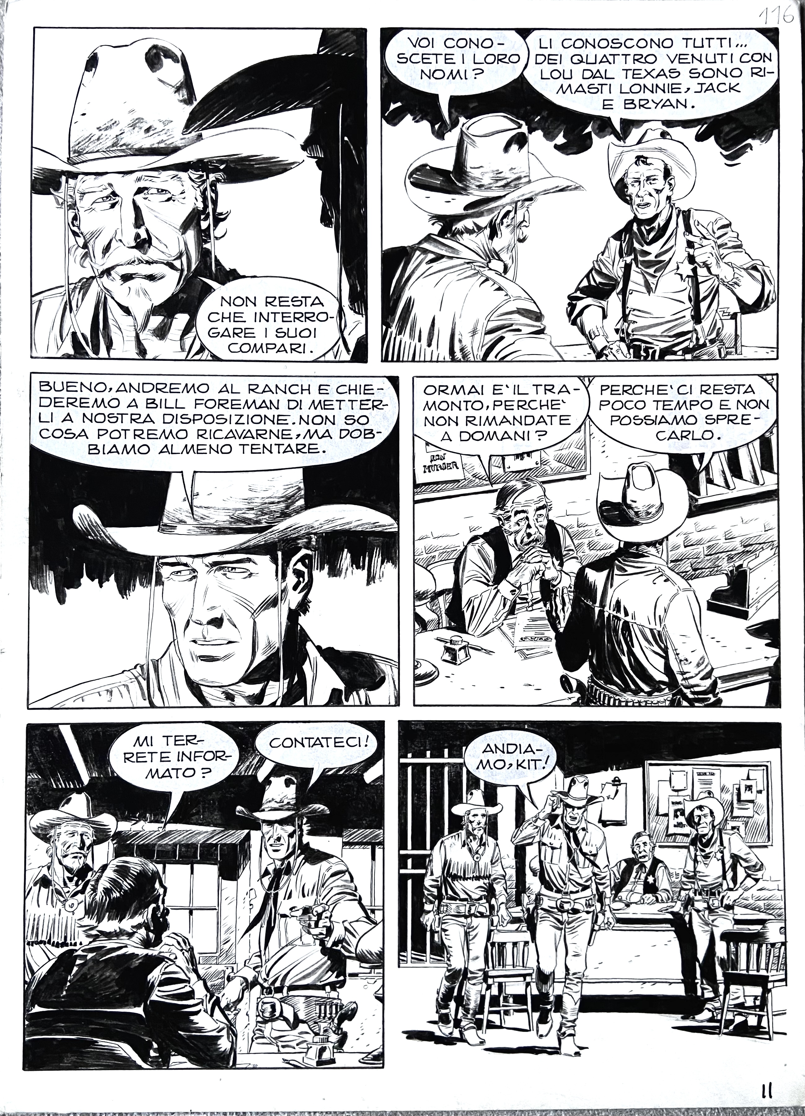| Descrizione | Tavola originale per Tex n. 535 Colpo su colpo. Cm. 24x33,5. China su cartoncino. Codice 2034. | |