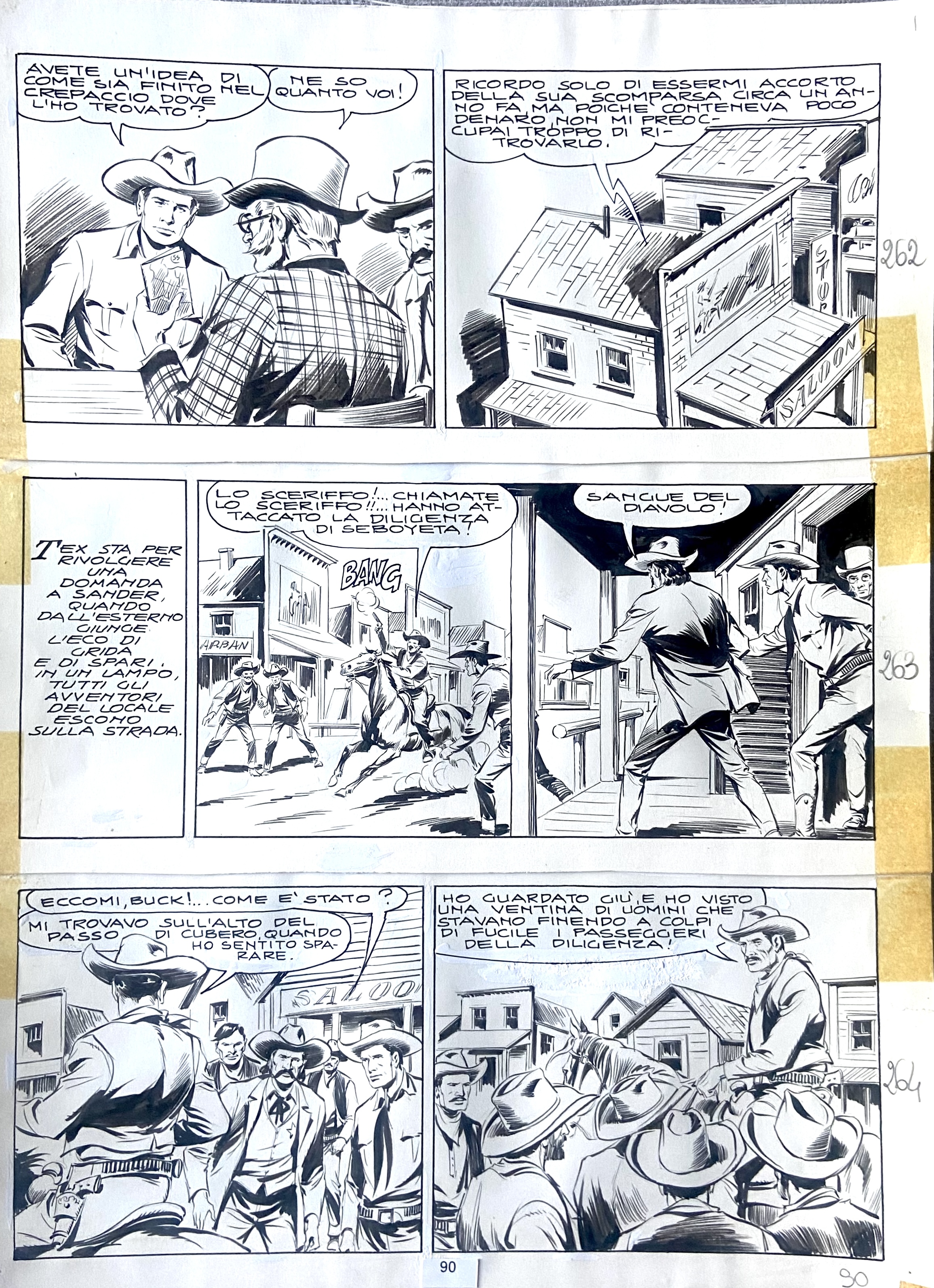 | Descrizione | Tavola originale per Tex n. 29. Cm. 24,5x33,5. China su cartoncino. Tre strisce assemblate. Codice 2039. | |