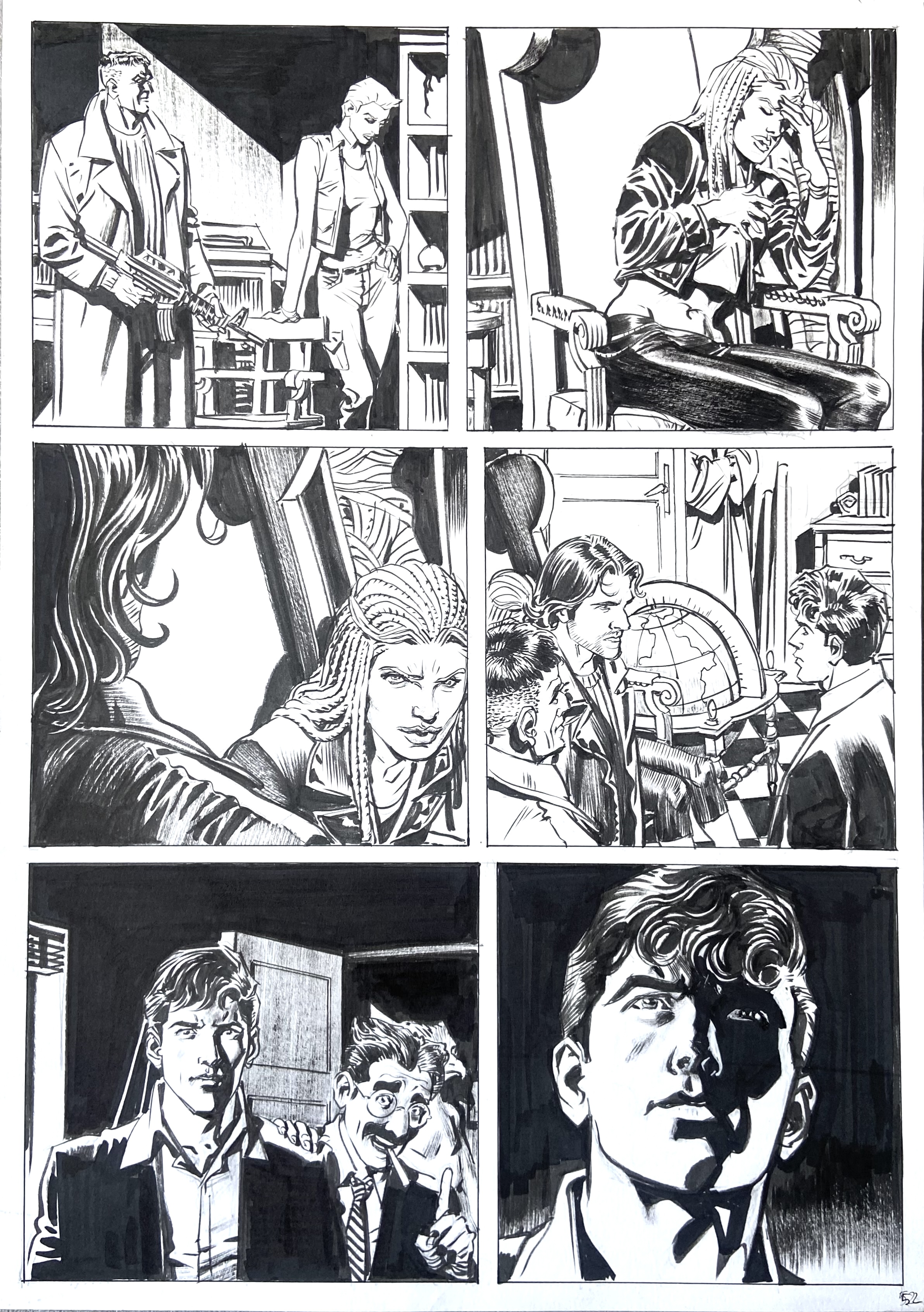 | Descrizione | Tavola originale per Dylan Dog n. 371. Cm. 29,5x42. China e pennarello su cartoncino. Codice 2082. | |