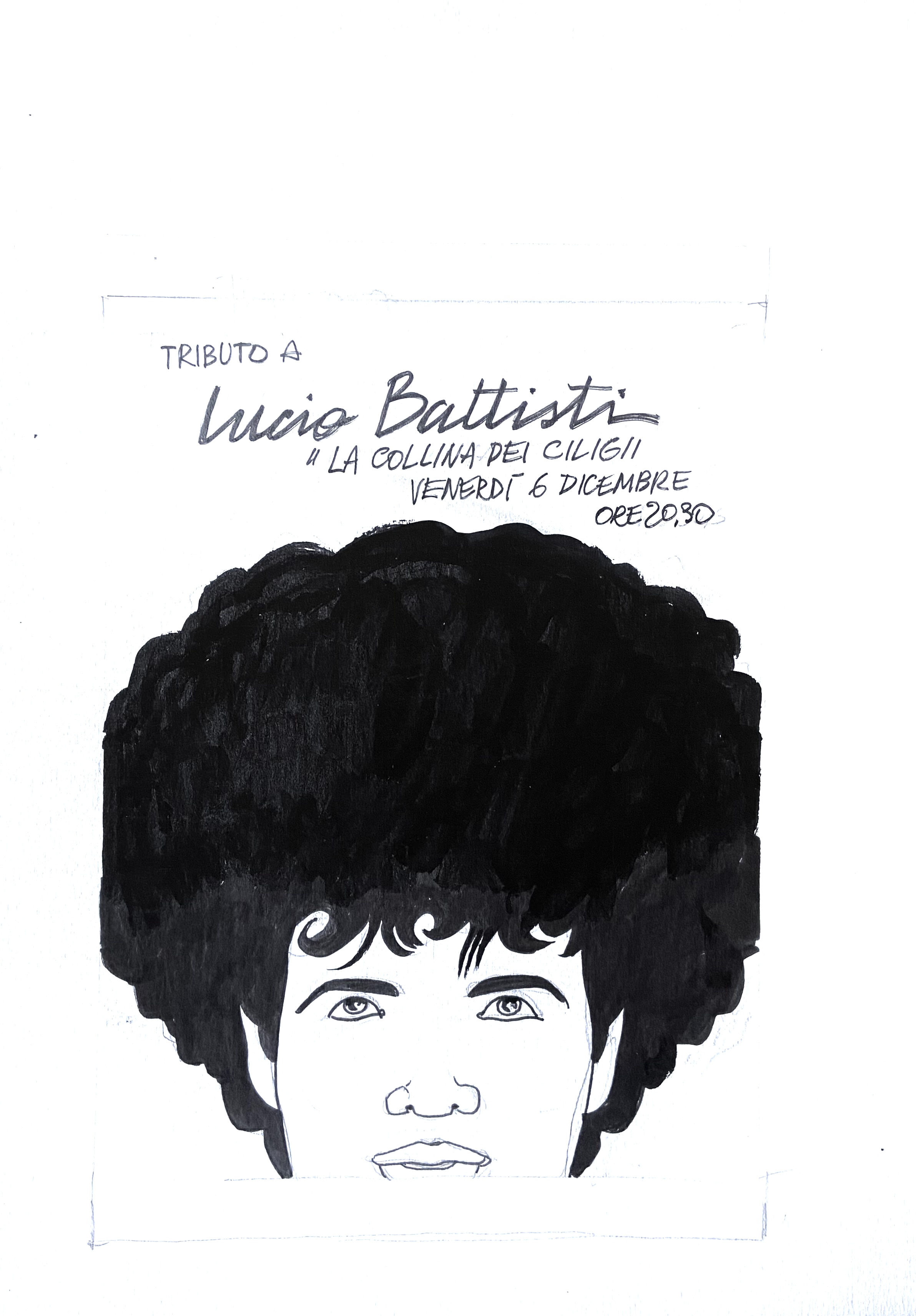 | Descrizione | Illustrazione originale omaggio a Lucio Battisti. Cm. 30x42. China e pennarello su cartoncino. Codice 2171. | |